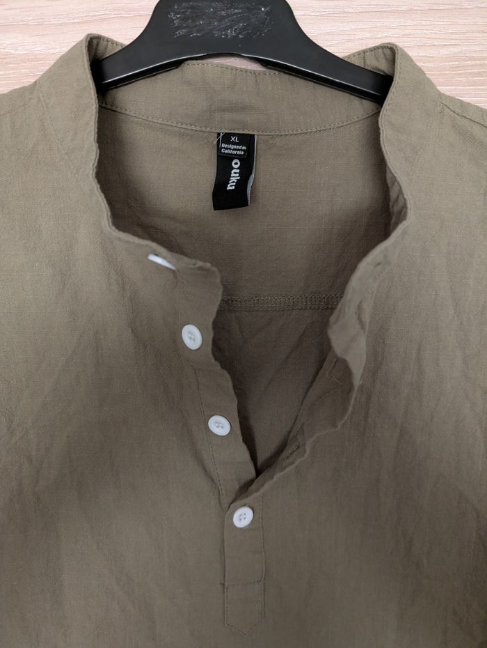 Bonjour vends cette chemise été pour hommes manches courtes, col mao taille XL en lin et coton, idéal en été prix 7€ envoi rapide et soigné (privilégiez mondial relay si vous le pouvez pour plus de rapidité) Pensez aux commandes groupées pour faire des économies, j'ai pas mal de t-shirts, chemises, et de shorts à vendre taille XL, L ou M.