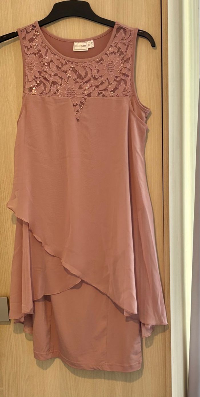 Robe rose poudré, courte, Taille 34-36 élastique . Neuf .