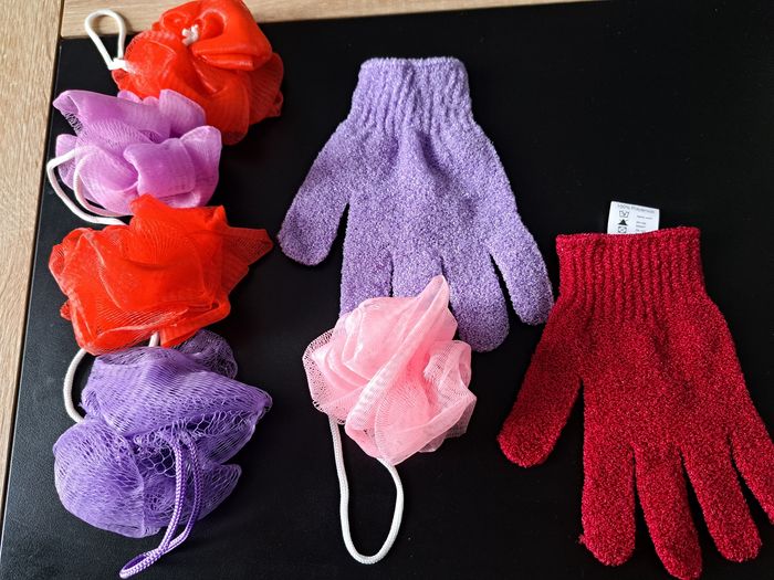 Lot de 5 fleur de douche et de 2 gants gommage neuf