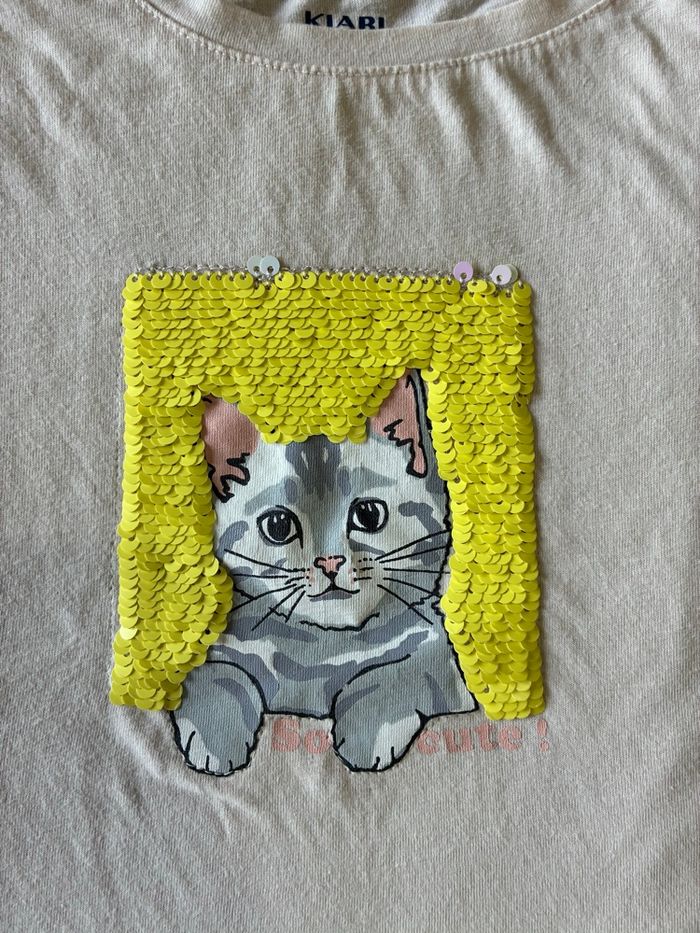🌸 T-shirt chat a sequins Ample Kiabi Taille 5 ans Très bon état 💡 N’hésitez pas à composer un lot avec d’autres articles de mon dressing afin d’activer les réductions 😉
