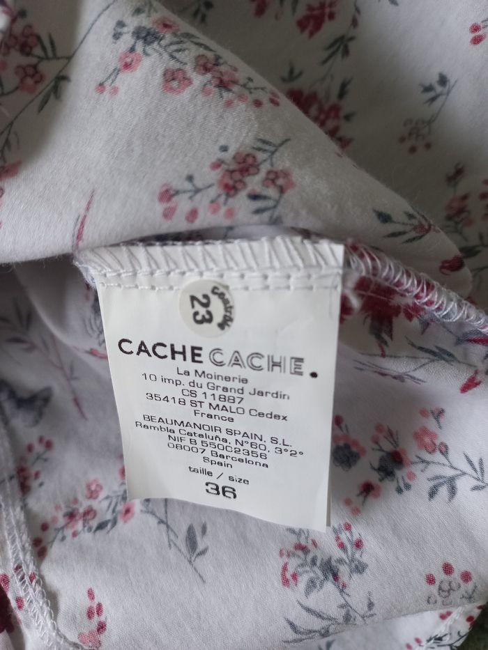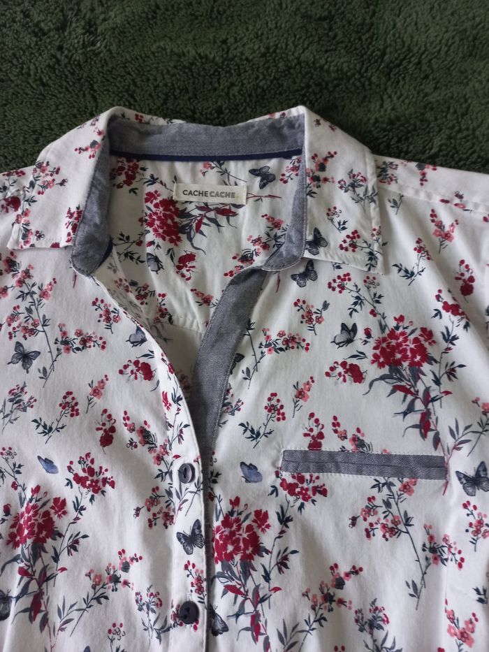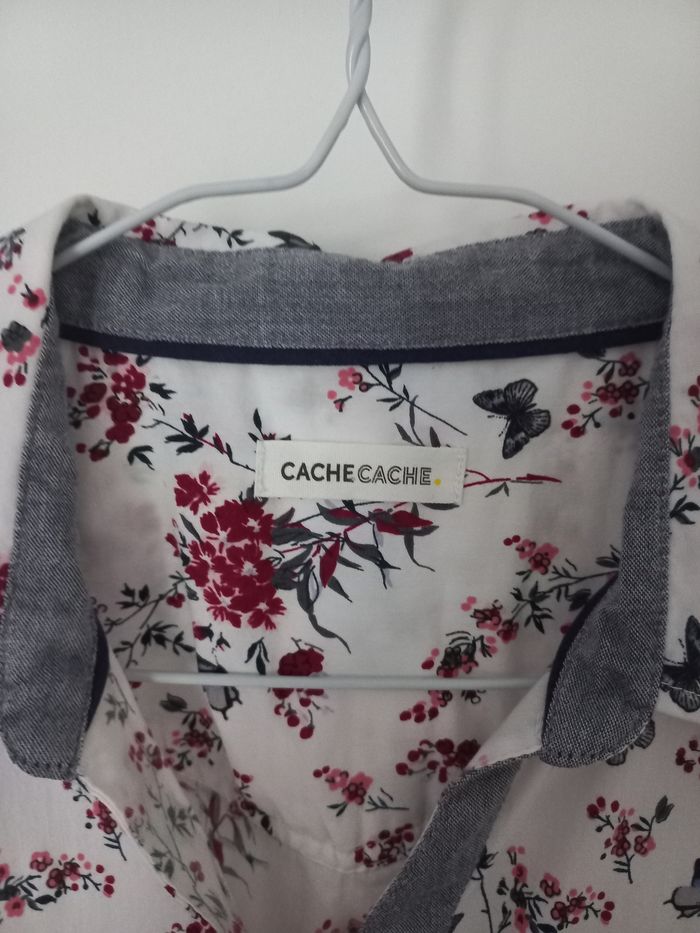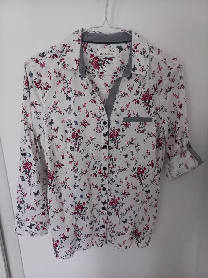 Je vends un chemisier manches 3/4 de chez cache cache en taille 36. Neuf, jamais porté. Possibilité de remonter les manches, comme sur photos. Matières: 70% coton, 26% polyamide, 4% elasthanne Pas de reprise si taille ne va pas. Prix : 10€