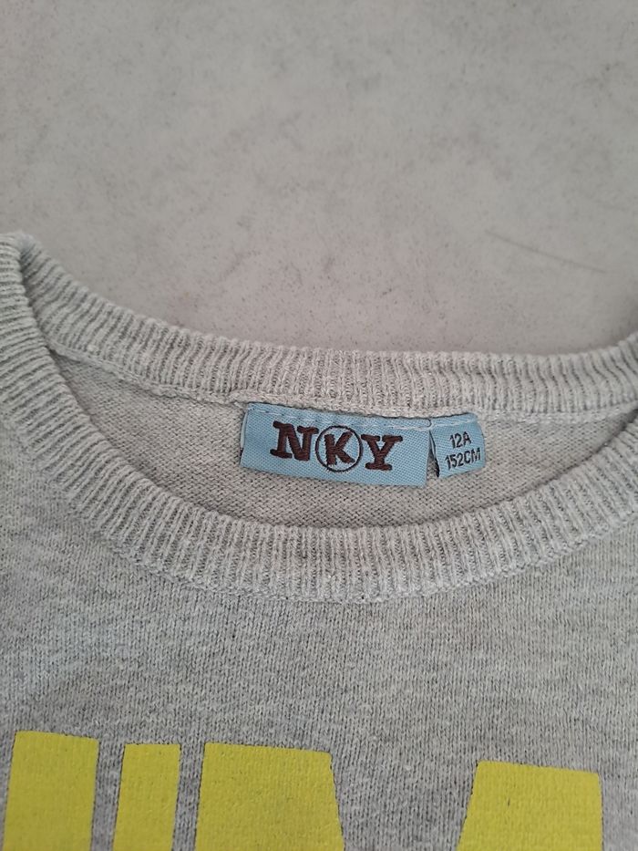 Pull fin gris avec inscription jaune Marque kiabi Taille 12 ans