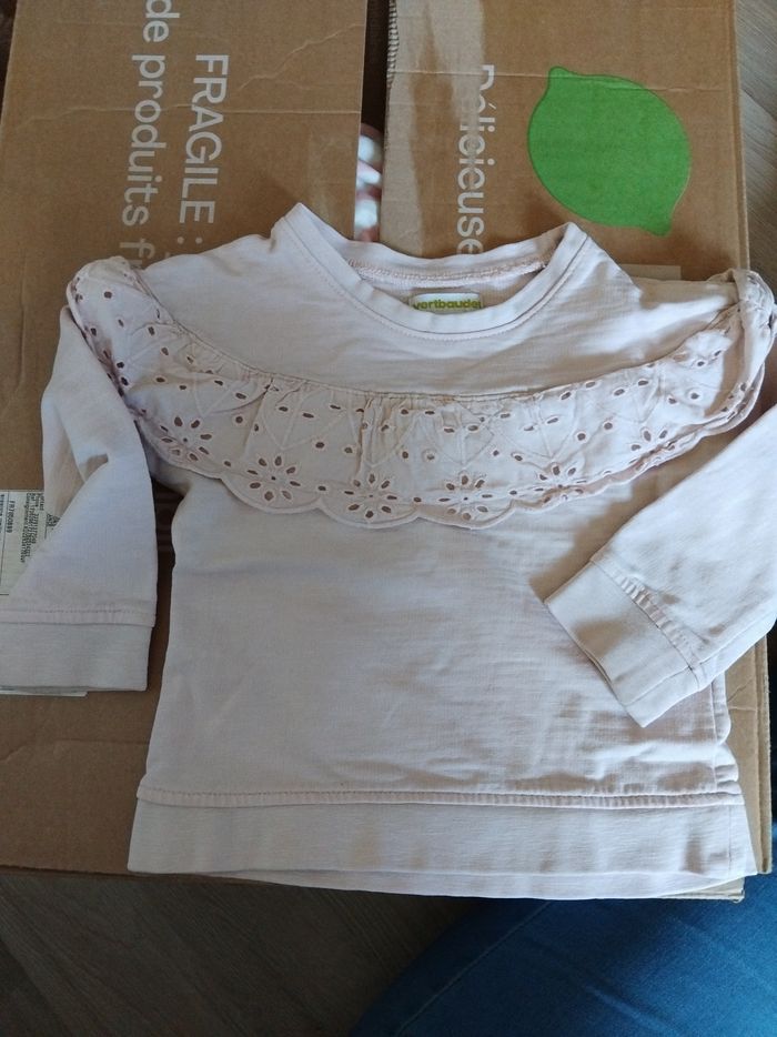 Pull laine ajouré, fille, 3 ans. Tricoté main.