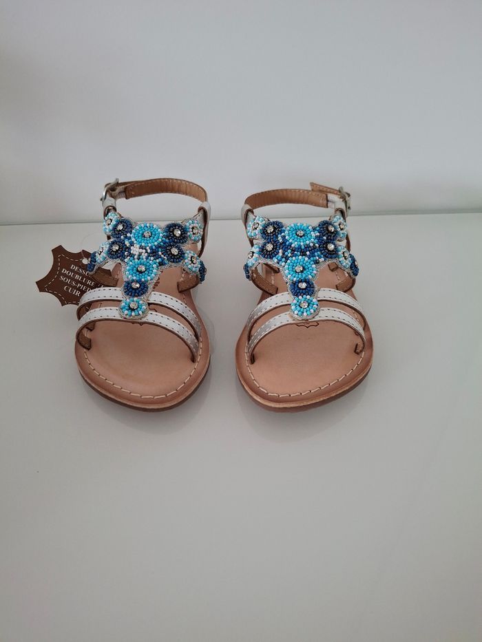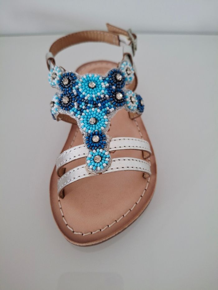 ▫️Très jolies sandales en cuir toutes neuves ! ▫️Argentées et petites perles bleues. ▫️Prix neuf : 34,99€