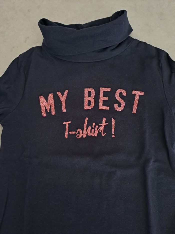 Sous pull bleu marine avec inscription rose pailleté Kiabi 8 ans