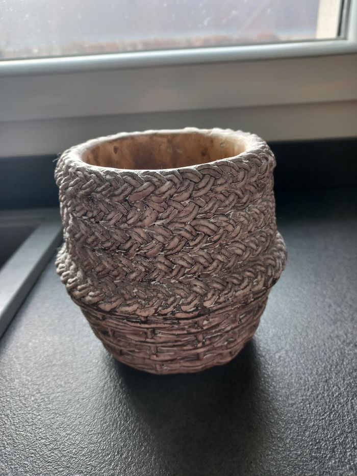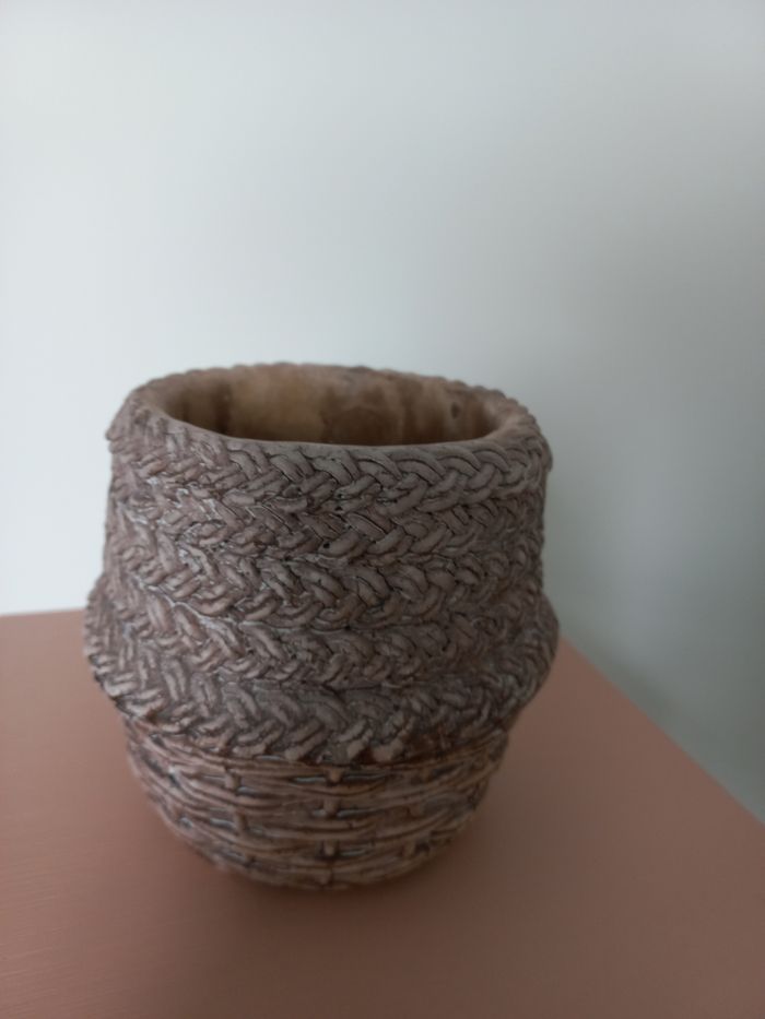 Je vends un cache pot, neuf. Hauteur 13.5cm, diamètre 9cm Prix : 7€