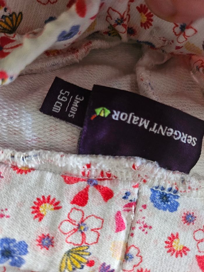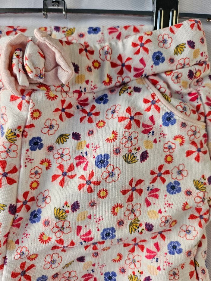 Pantalon blanc avec imprimés multicolores. Petit nœud à la taille. Deux fausses poches devant. Marque : Sergent major Taille: 3 mois