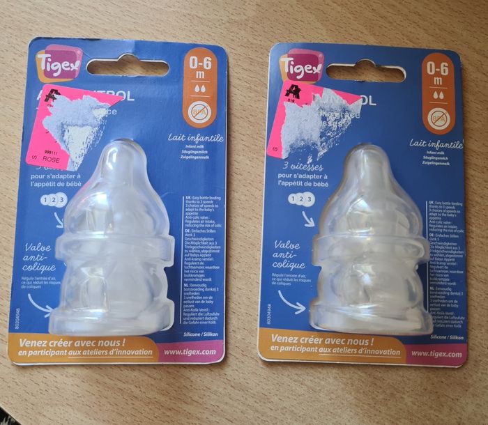 Lots de 2 paquets de 2 tétines biberons Tigex