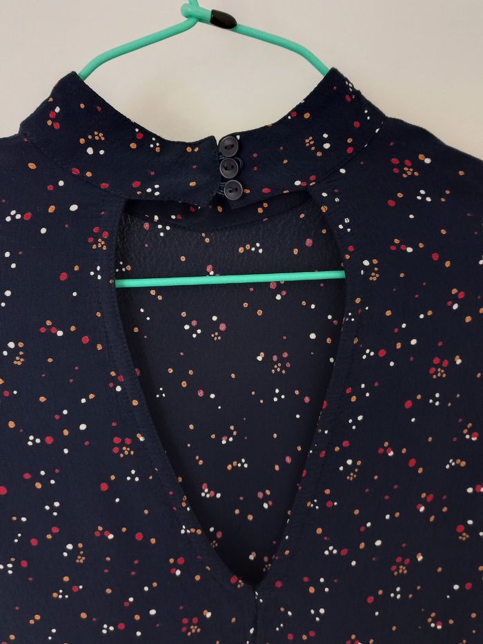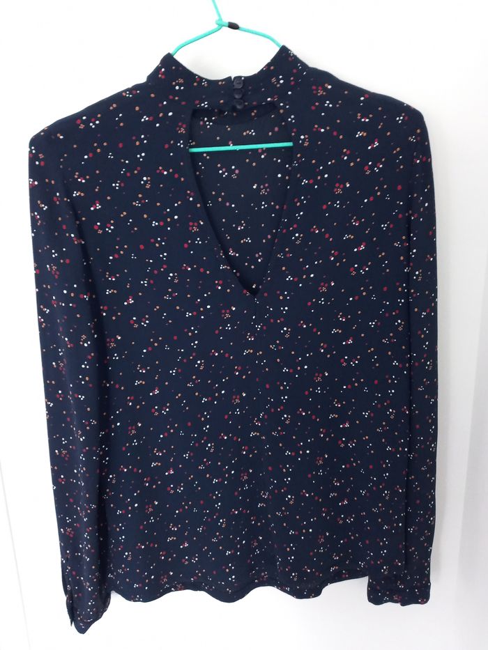 Je vends une blouse, manches longues de chez Bizzbee en taille XS. Plus d'étiquettes de taille, marque et lavage. Lavable à 30 degrés délicat en machine. Petit col montant fermé par 3 boutons à l'arrière. Col V à l'arrière de la blouse. Très peu portée. Pas de reprise si taille ne va pas. Prix : 5€