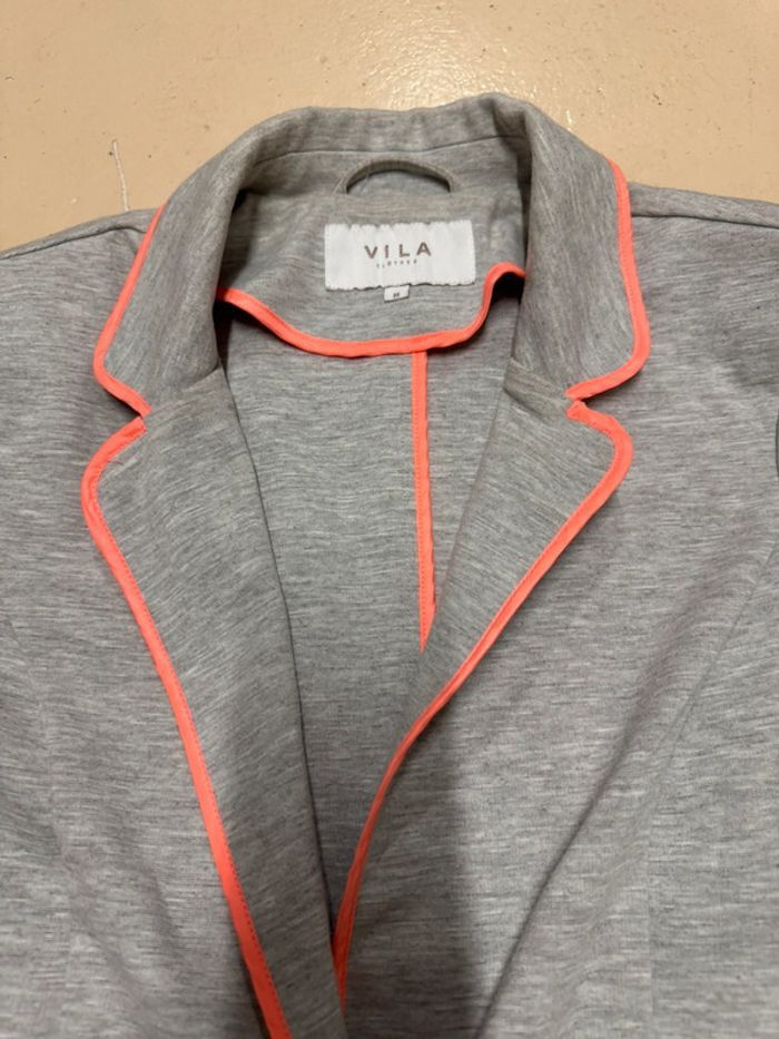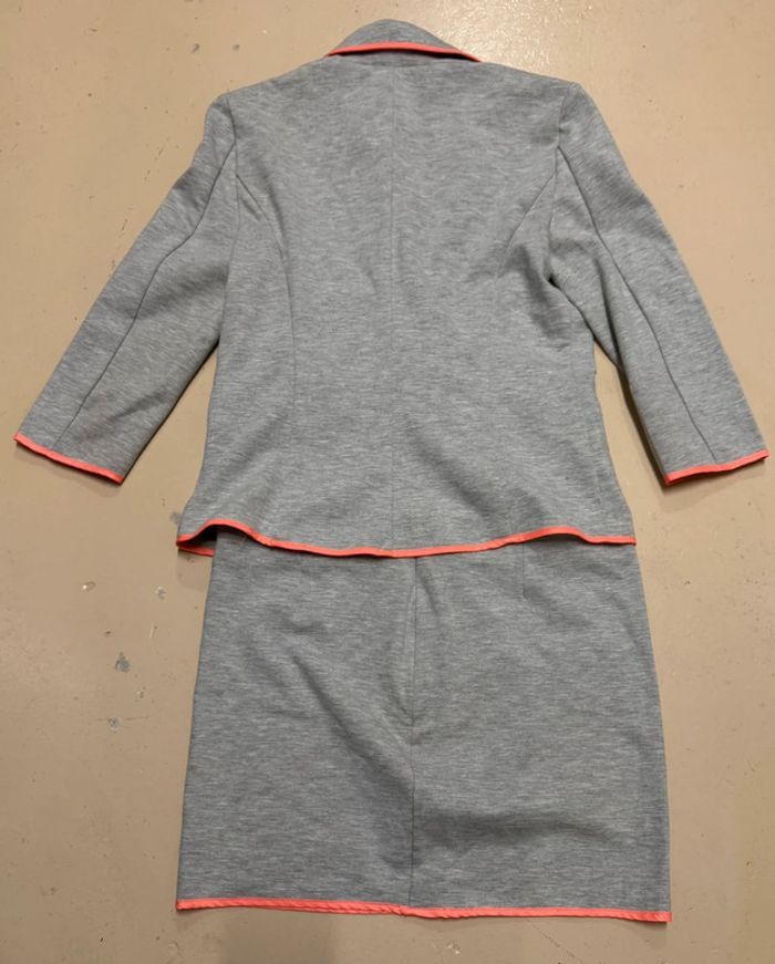 Super ensemble sport avec blazer en molleton gris et biais rose fluo et mini jupe Très mignon et en parfait état