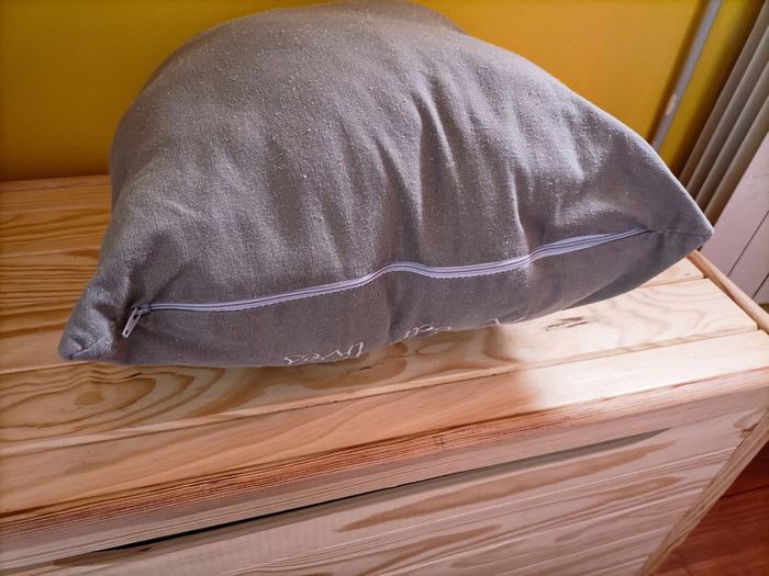 Vends joli coussin décoratif brodé, idéal pour une ambiance cocooning ou pour un fan de chats. Design : Motif chat soigné et inscription "A cat lives here". Dimensions : 40 x 40 cm. Pratique : Déhoussable avec fermeture éclair invisible. État : Jamais utilisé, il a simplement décoré un lit. Entretien : A été lavé une fois par mesure d'hygiène. Détail : Suite à ce lavage, le tissu a pris un aspect très légèrement duveteux, ce qui le rend encore plus doux au toucher.