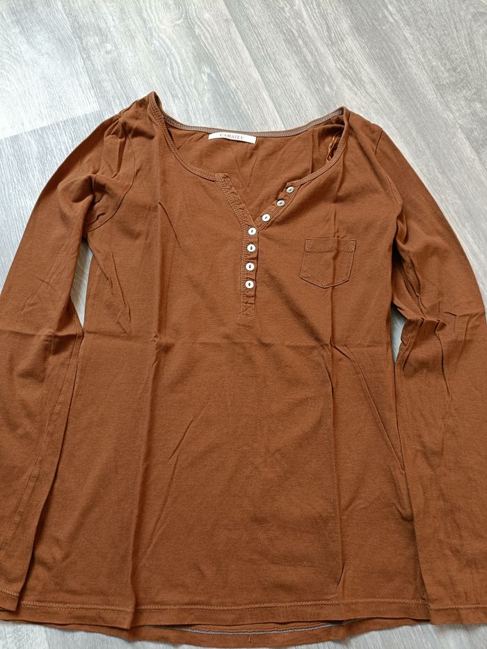 Petit pull fin femme marron camaïeu La taille n'est pas indiqué je le situe plutôt en S