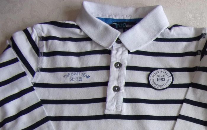 Tee shirt/polo - 8 ans Polo YYC collection rayé marine/blanc écusson