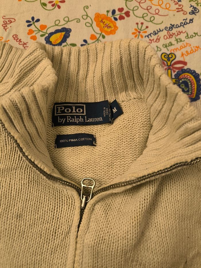 Pull zippé a col roulé Ralph Lauren homme taille xl original beige crème