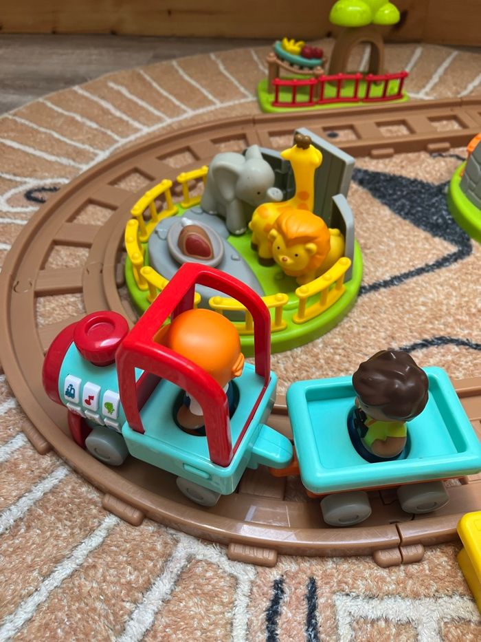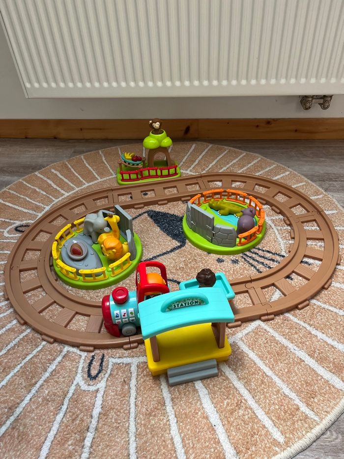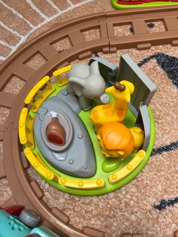 Complet avec animaux, enclos, train sonore, rails, personnages. En parfait état