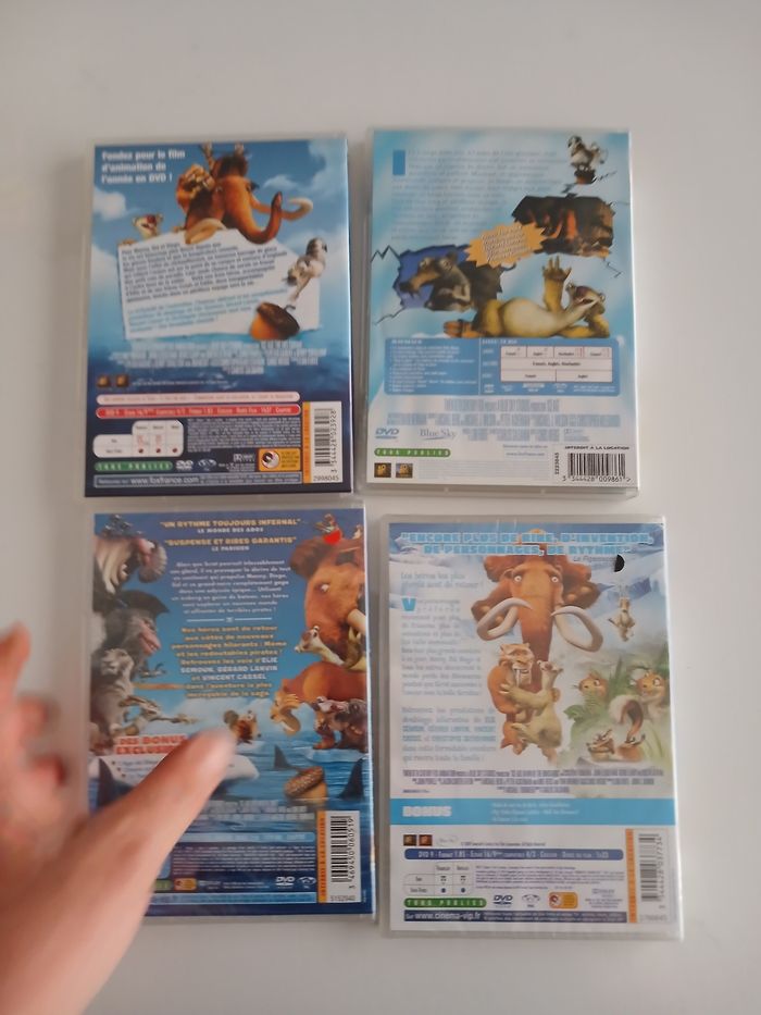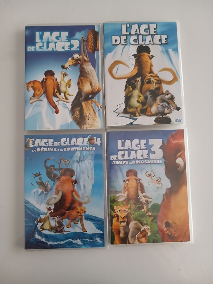 Vends lot des 4 premiers films de la saga culte L'Âge de Glace. Parfait pour une soirée cinéma en famille ! ​L'Âge de Glace 3 : Le Temps des Dinosaures – NEUF (sous blister d'origine). ​L'Âge de Glace 4 : La Dérive des Continents – NEUF (sous blister d'origine). ​L'Âge de Glace 1 – Très bon état. ​L'Âge de Glace 2 – Très bon état. ​Langue : Français Format : DVD