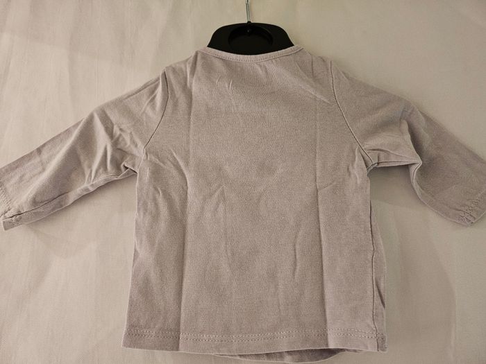 T-shirt manches longues parmesan avec flocage devant. Deux boutons sur l'épaule. Marque : Kiabi Taille : 3 mois