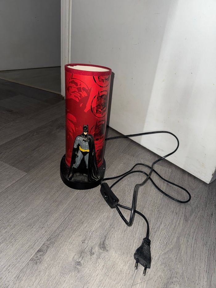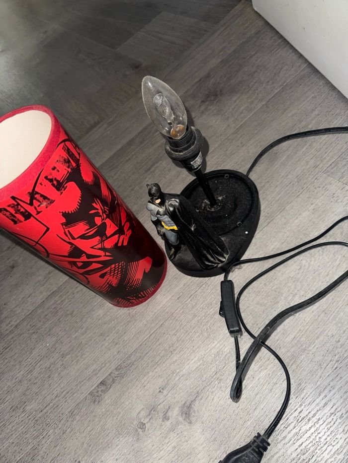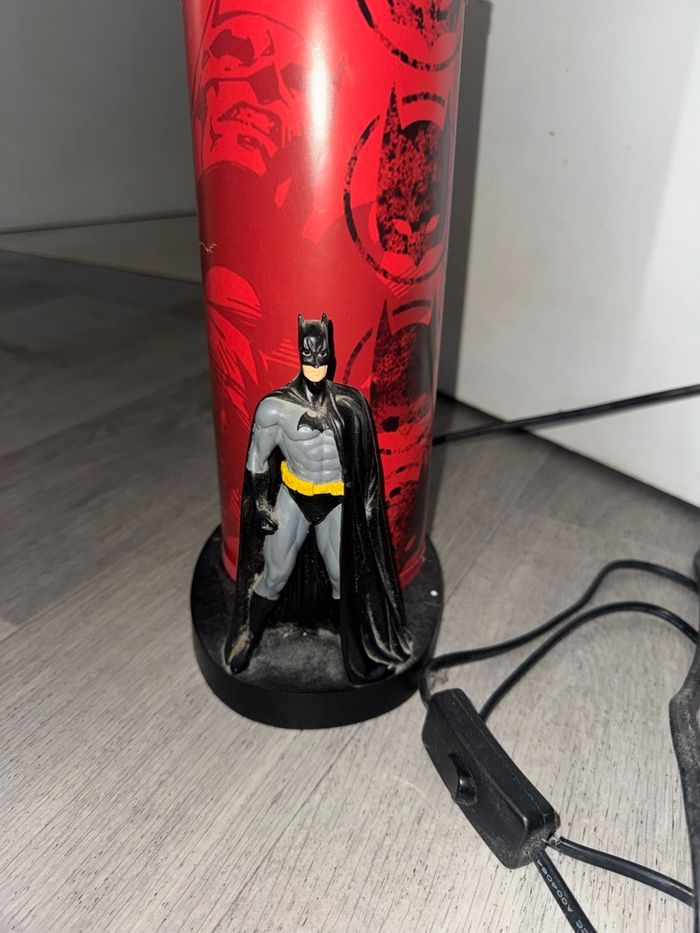 Je vends cette lampe de chevet Batman, parfaite pour les fans de l'univers DC qui souhaitent ajouter une touche de super-héros à leur décoration. - Type de produit : Lampe à poser - Thème : Batman - Couleur : Rouge et noir - Matière : Abat-jour en tissu imprimé, base en résine - Accessoires inclus : Cordon d'alimentation avec interrupteur Très bon état N'hésitez pas à me contacter pour plus d'informations ou de photos supplémentaires. #elviiraaa788 #elviiraaaaccessoires