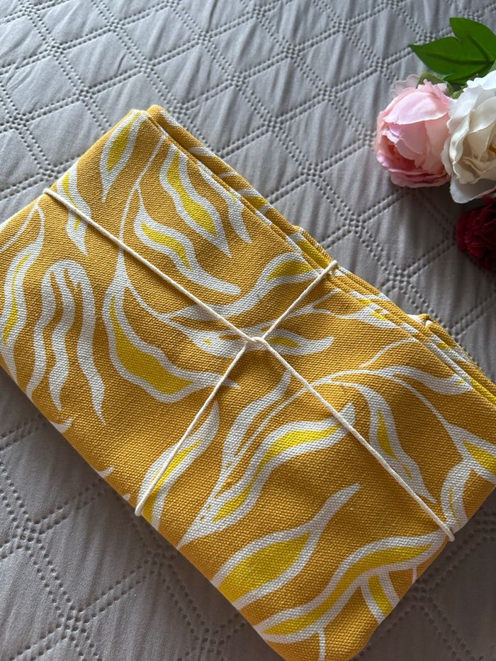 Vends ce magnifique sac cabas de la marque My Little Box, modèle "Soleil à l'épaule" (ou Die Sonne im Gesicht).✨ 🔹 État : Neuf, jamais utilisé. Encore plié avec sa ficelle d'origine et ses étiquettes. 🔹 Matière : 100 % coton recyclé (toile épaisse et résistante). 🔹 Design : Joli motif végétal/abstrait jaune soleil et blanc, parfait pour l'été. 🔹 Détails : * Deux paires de anses (une courte pour le porter à la main, une longue pour l'épaule). 🔹 Fermeture par un bouton pression doré. 🔹 Écusson "My Little Box" avec palmier sur le devant. 🍃Usage : Très spacieux, idéal comme sac de plage, sac de courses (tote bag géant) ou pour les sorties en ville.🍃