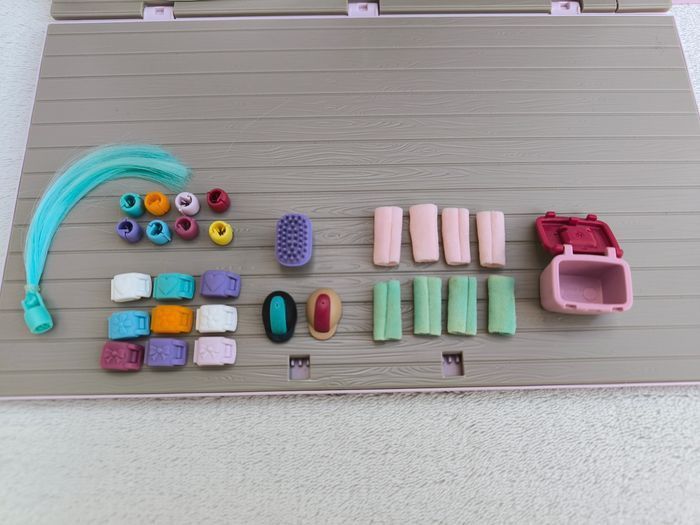 Set de jeu Malette de coiffage, salon de coiffure, club équestre 42587, Horse Club Sofia's Beauties Marque Schleich À partir de 4 ans • Malette de transport dépliante • Manque quelques éléments, quelques marques sur la malette Sans boîte En très bon état #evelyne_jeux