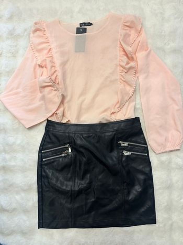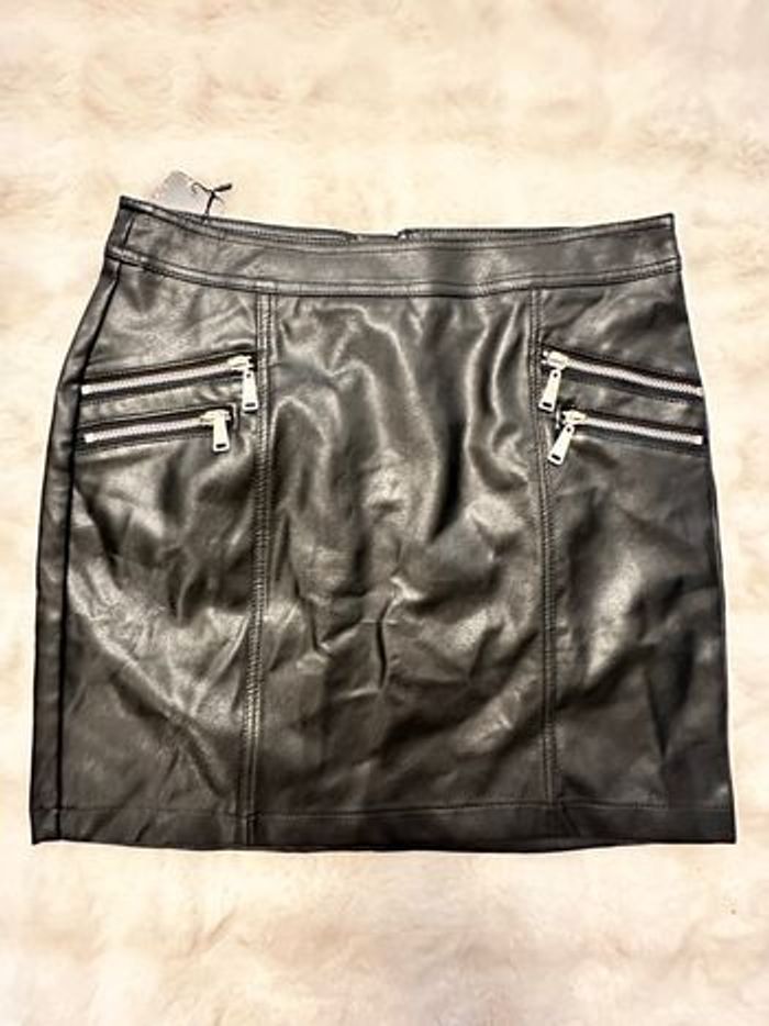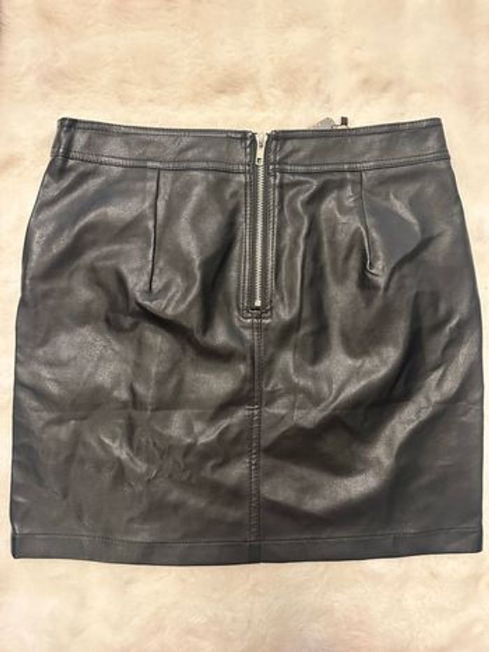 Jupe noire effet simili cuir avec détails zips sur le devant, style biker très tendance 🔥  - photo numéro 1
