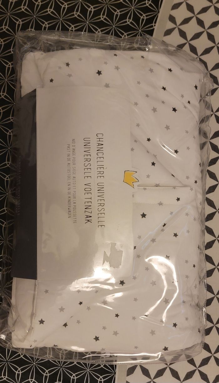 Chancelière universelle neuf avec étiquettes pour poussette et siège auto . J'en ai une deuxième dit moi si vous la voulez 12 euros une 20 euros les 2 .