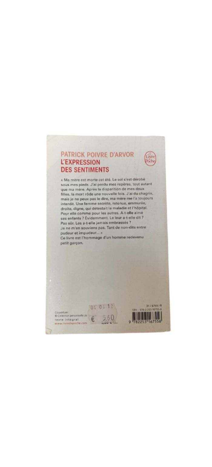 ❓• En bon état : - quelques traces d'usure sur la couverture et la tranche dues au temps (voir photos), mais l'intérieur est propre et parfaitement lisible 📚 • Roman "L'expression des sentiments" par Patrick Poivre d'Arvor. Un récit intime et poignant où l'auteur se livre avec pudeur sur la perte de sa mère et le poids des non-dits familiaux. Un hommage vibrant d'un homme qui redevient, le temps d'un livre, un petit garçon 🌍 • Une quête de vérité et de mémoire : À travers ses souvenirs, l'auteur explore la personnalité d'une mère secrète, droite et digne, qui a toujours interdit l'expression du chagrin. Entre le décès de ses deux filles et la disparition de sa mère, PPDA interroge les liens du sang et la difficulté de dire "je t'aime" 💡 • Le mot de l'éditeur : "Ma mère est morte cet été. Le sol s'est dérobé sous mes pieds." Ce livre est une plongée dans les racines de l'un des journalistes les plus célèbres de France, un texte entre pudeur et impudeur qui résonne en chacun de nous 📏 • Format poche (Le Livre de Poche) 💶 • Prix neuf en magasin : 5,60€ 🏷️ • Auteur : Patrick Poivre d'Arvor (PPDA) 💯 • Réduction jusqu'à -20% sur les lots 🎁 • - petit cadeau dans votre colis pour les commandes de + de 10€ - 1 article entre 1 et 2€ choisi par vous-même pour les commandes de + de 15€ #livre #roman #litterature #PPDA #patrickpoivredarvor #lexpressiondessentiments #temoignage #biographie #famille #souvenirs #emotion #lecture #passionlecture #livredepoche #classique #bibliotheque #secondemain #ecologie #economie #pascher #petitprix #livreoccasion #nostalgie #ecrivain #sentiments