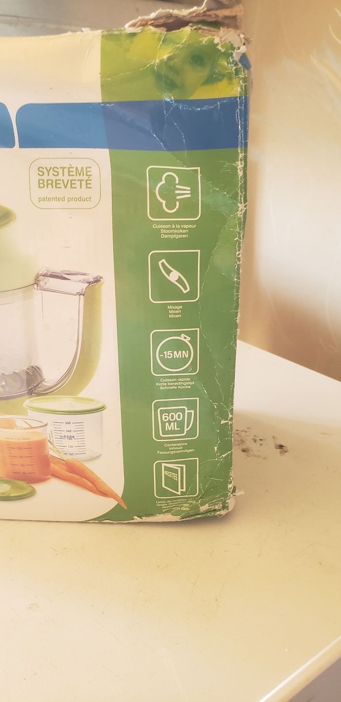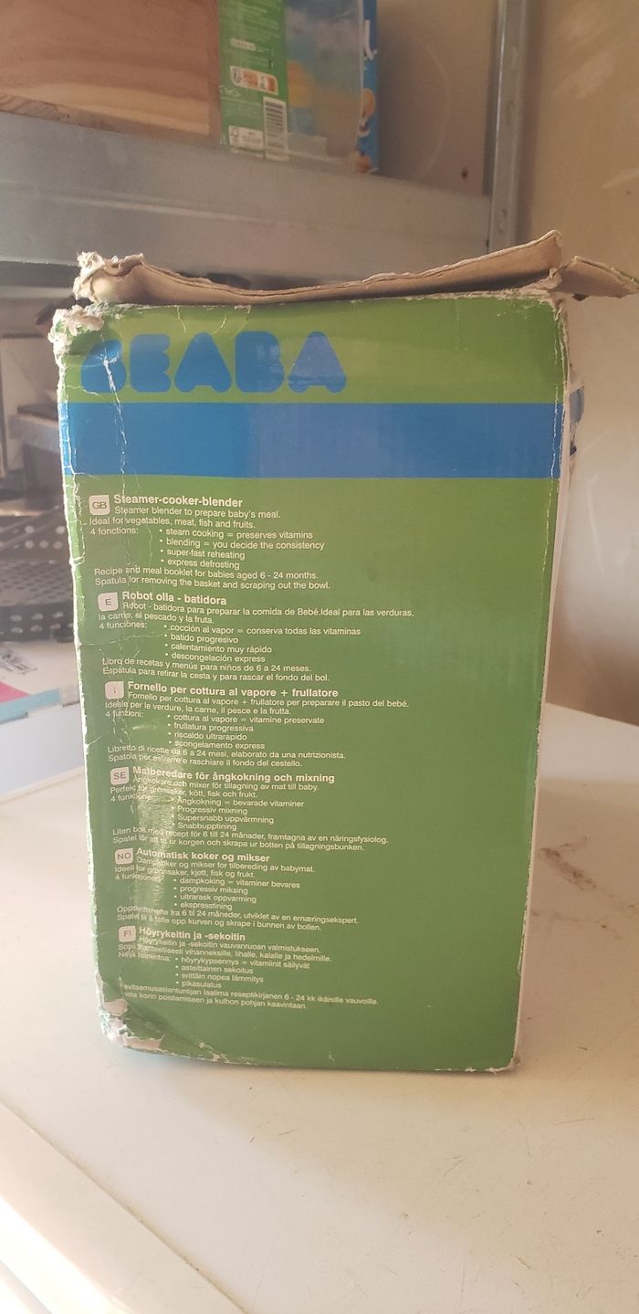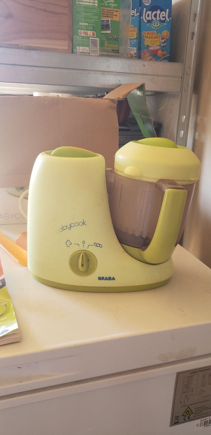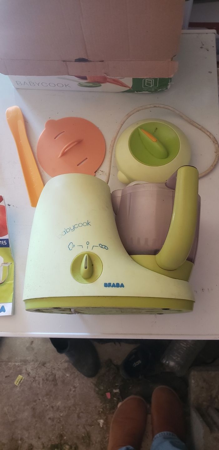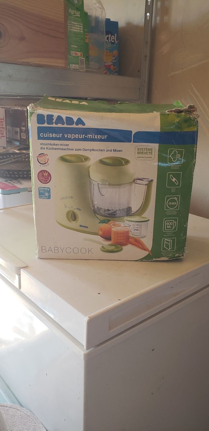 🍼Babycook Beaba mixeur-cuiseur🍼 Robot cuiseur 4 en 1 contenance 800 ml babycook original - vert 🍵Le Babycook® Original de BÉABA® est un robot multifonction 6 en 1 conçu pour simplifier la préparation des repas de votre bébé. Capable de cuire à la vapeur, mixer, décongeler et réchauffer, il offre une solution pratique et efficace pour accompagner la diversification alimentaire de votre enfant. 🤖Atouts importants en un coup d'œil : - ROBOT 6 EN 1 : Cuit à la vapeur, mixe, décongèle et réchauffe - CUISSON SAINE A LA VAPEUR : Pour des repas sains, faits maison. Préserve les saveurs et les nutriments - MIXAGE EFFICAFE : Doté d'une lame qui permet de mixer les ingrédients - ULTRA COMPACT : Robot compact pour un gain de place - ACCESSOIRES INCLUS : Spatule, couvercle de mixage et livret de recettes 🛍Vendu neuf par Verbaudet à 120 euros 📦Carton en mauvais état due aux transports régulier en vide-grenier 🧼Sera lavé avant envoie 📫ENVOIE RAPIDE ET SOIGNÉ 📫