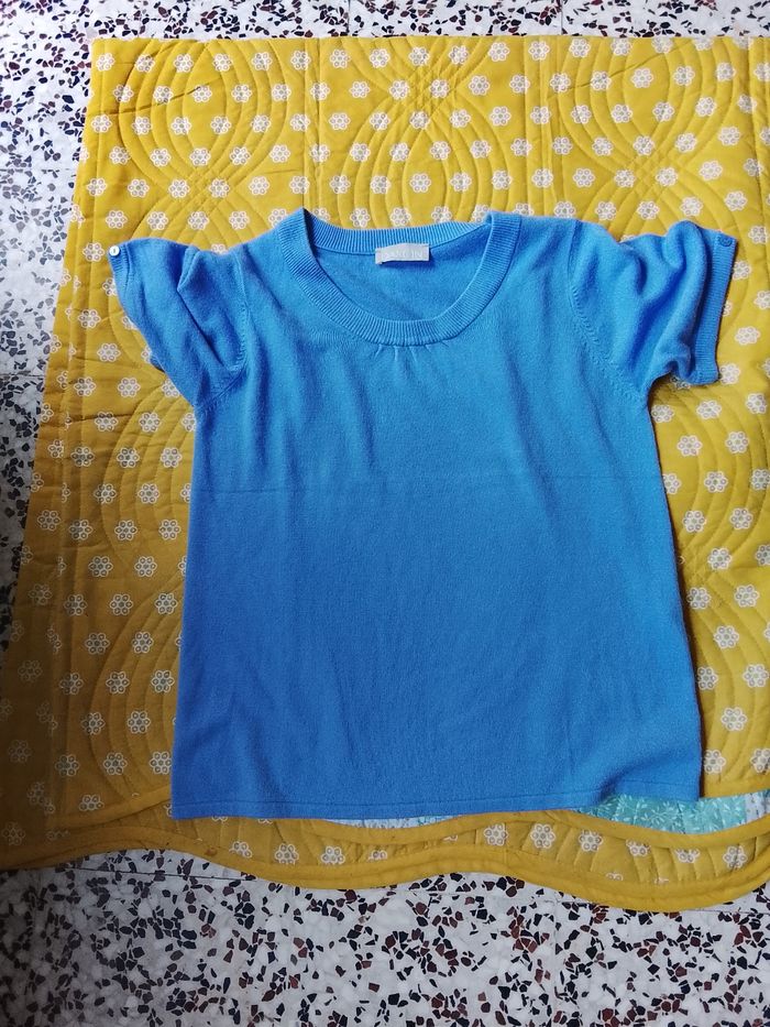 Bonjour, très beau pull a manches courtes de la marque Daxon en violet en taille 40/42. 100% Acrylique. En très bon état et sans étiquette : hauteur devant : 63cm, largeur : 52cm. Hauteur manche : 22cm, largeur : 19cm.