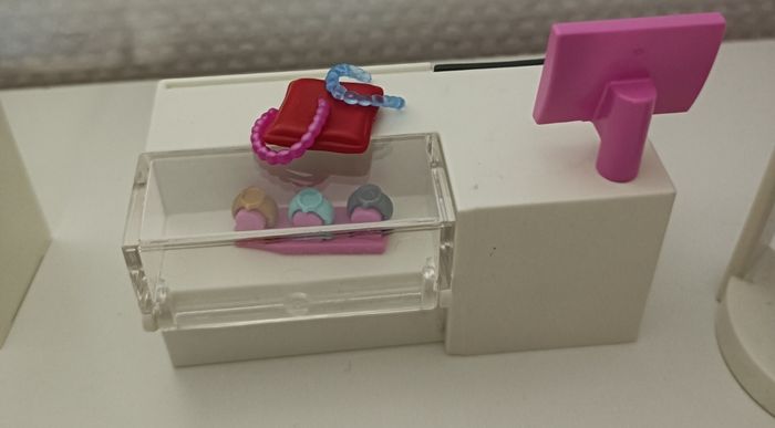 ✅ • En très bon état (vendu sans boîte d'origine mais complet) 📥 • Le lot contient : - un espace coiffure avec fauteuil de coiffure blanc, bac de lavage, grand miroir et paire de ciseaux - un espace boutique avec comptoir de caisse avec écran, tiroir-caisse qui s'ouvre (billets et pièces inclus), vitrine d'exposition pour bijoux - accessoires de beauté avec présentoir avec 4 perruques interchangeables (blondes et brunes), jupe, flacons, barrettes fleurs, bracelets et colliers sur leur coussin de présentation - mobilier avec étagère de rangement blanche et petit matériel (vaporisateur bleu) 📏 • Taille : Adapté aux figurines Playmobil classiques 💶 • Prix neuf en magasin : environ 20,00€ - 25,00€ 🏷️ • Marque : Playmobil 💯 • Réduction jusqu'à -20% sur les lots 🎁 • - Petit cadeau dans votre colis pour les commandes + de 10€ - 1 article entre 1 et 2€ choisi par vous-même pour les commandes de + de 15€ #playmobil #playmobilfans #salondecoiffure #coiffeur #beauté #mode #perruque #bijoux #jouetenfant #imagination #villedesenfants #miniature #figurine #playmobilcity #jeuxdinitiation #secondemain #ecologie #economie #pascher #petitprix #cadeauenfant #anniversaire #collectionplaymobil #vendeurserieux #jouetoccasion