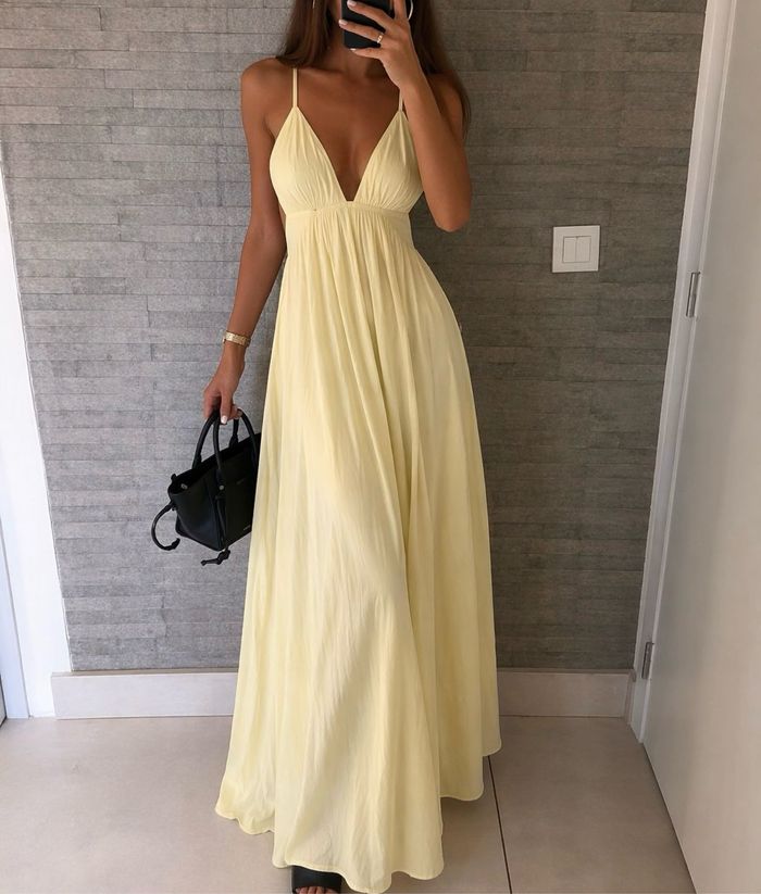 Robe chic jaune décolleté dos nu