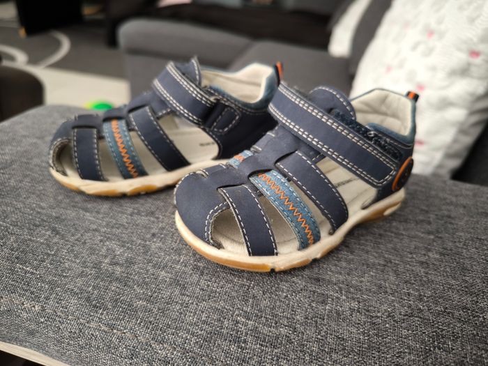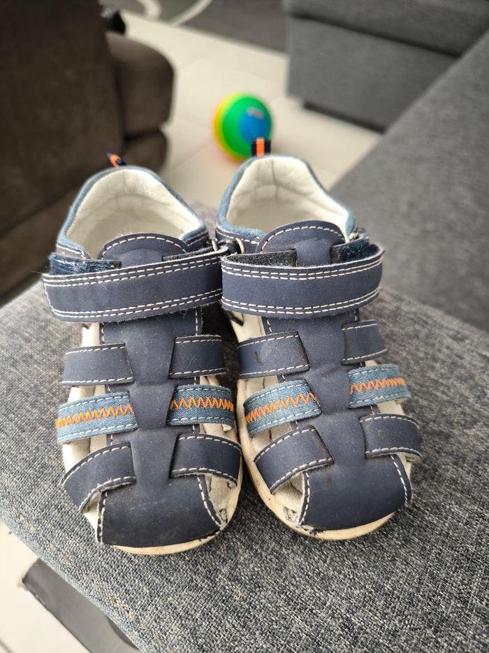 Chaussures Salomé cuir à scratch - Beige/Ciel - Pat et Ripaton - T.19 - Neuves