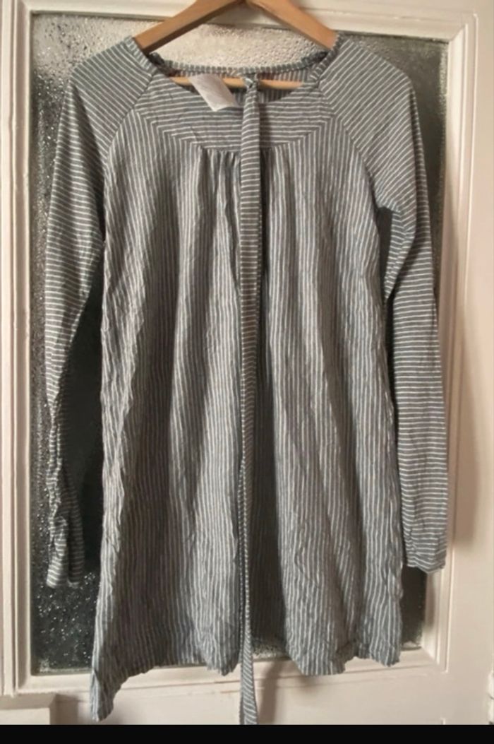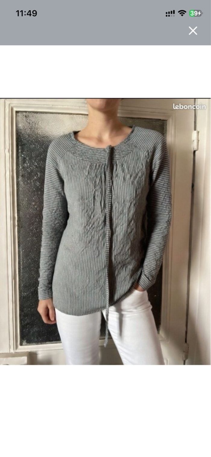 Tunique longue légère rayé grise avec lien à nouer sur le devant pour une touche féminine Tissu léger fluide comme un t shirt est très agréable à porter Les manches Raglan et la coupe légèrement ajusté met la silhouette en valeur tout en étant très confortable Taille 36 Neuve