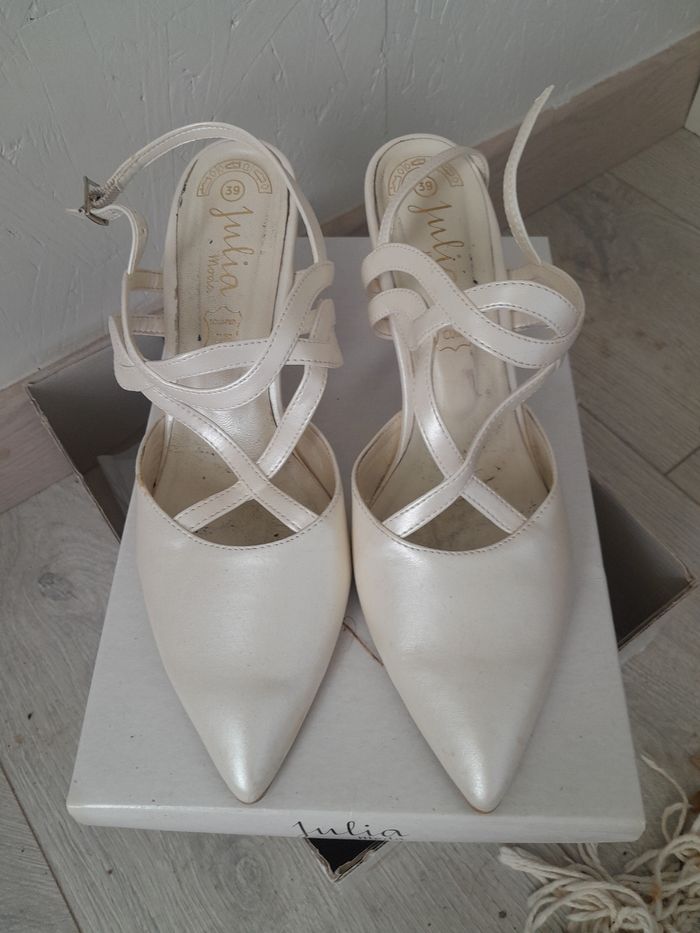 Chaussures à talons de couleur nacre/écru, portées une fois. Taille 39