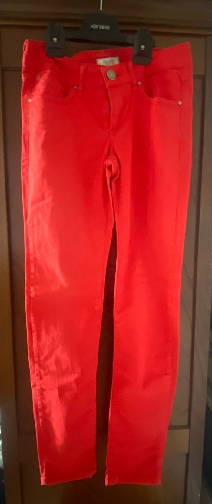 Jeans skinny femme, HPK, taille S 36, 98% coton, strass cerises