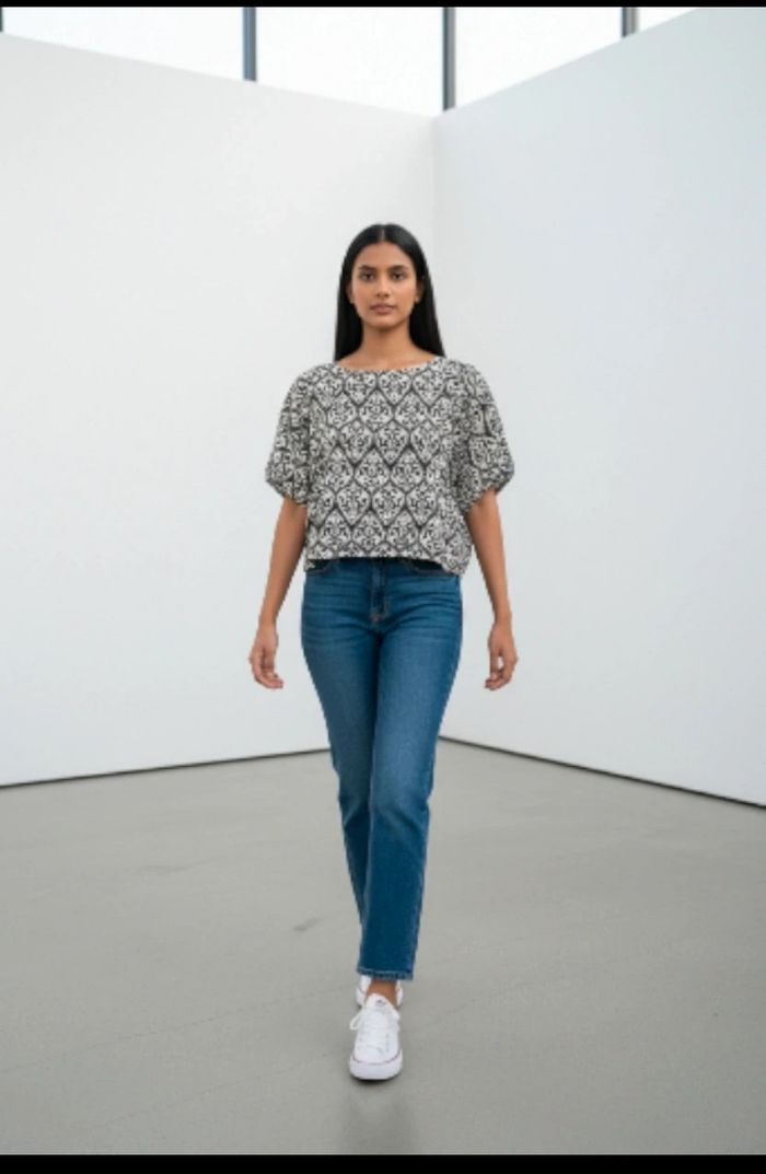 👕 Blouse col tunisien Camaïeu à motif taille 38 👕
