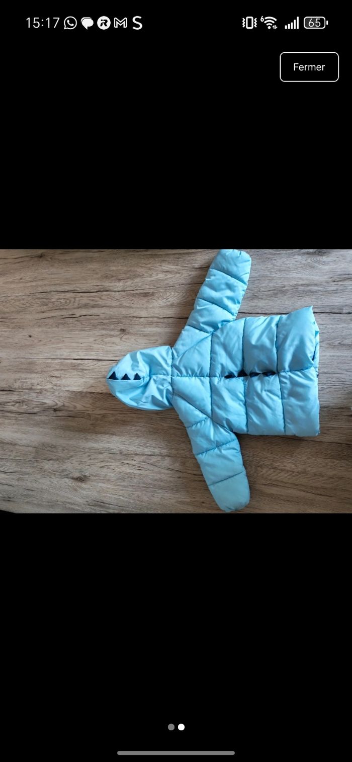 Bonjour, Je vends une doudoune dinosaure de la marque Primark care en taille 9-12 mois. Très très bon état. Pas de tâches ni de trous.