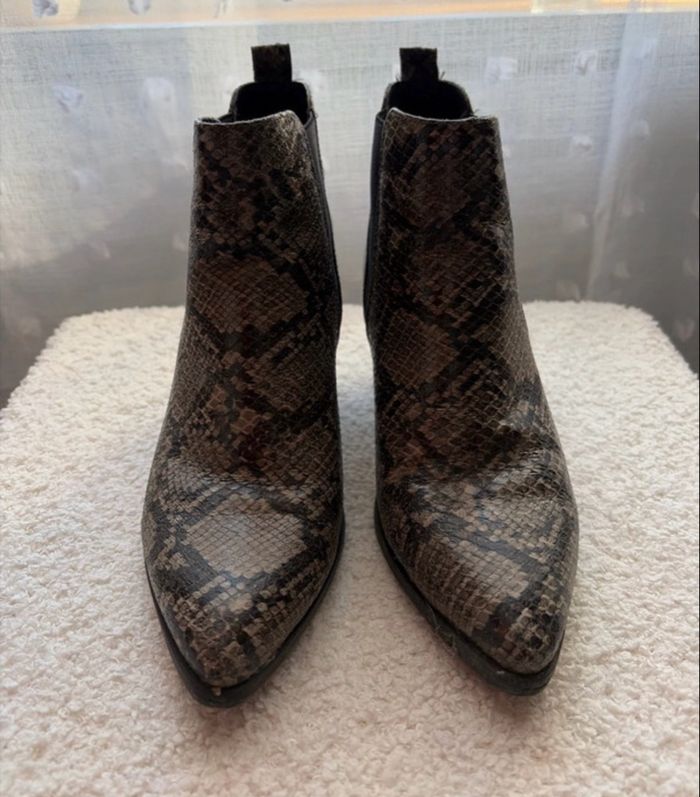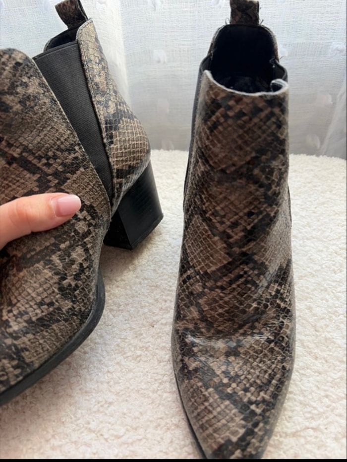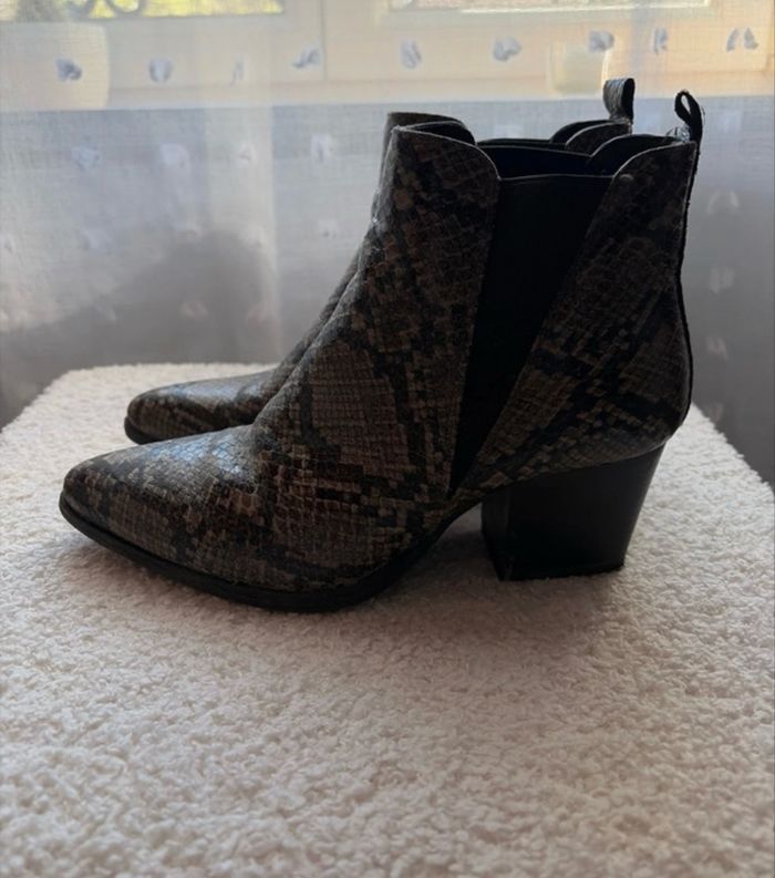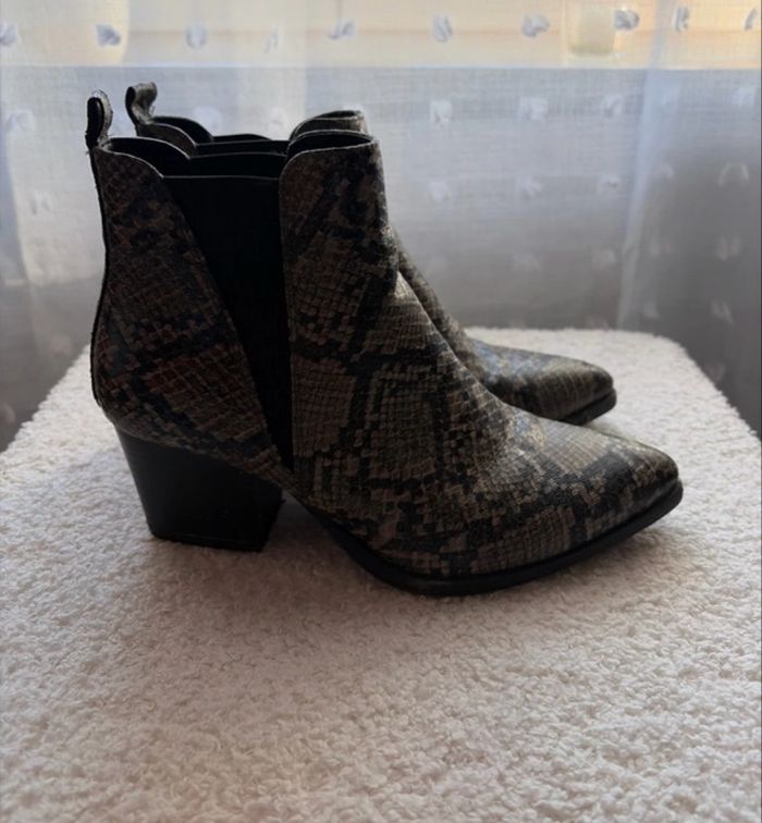Bottines à talons grises imprimé serpent