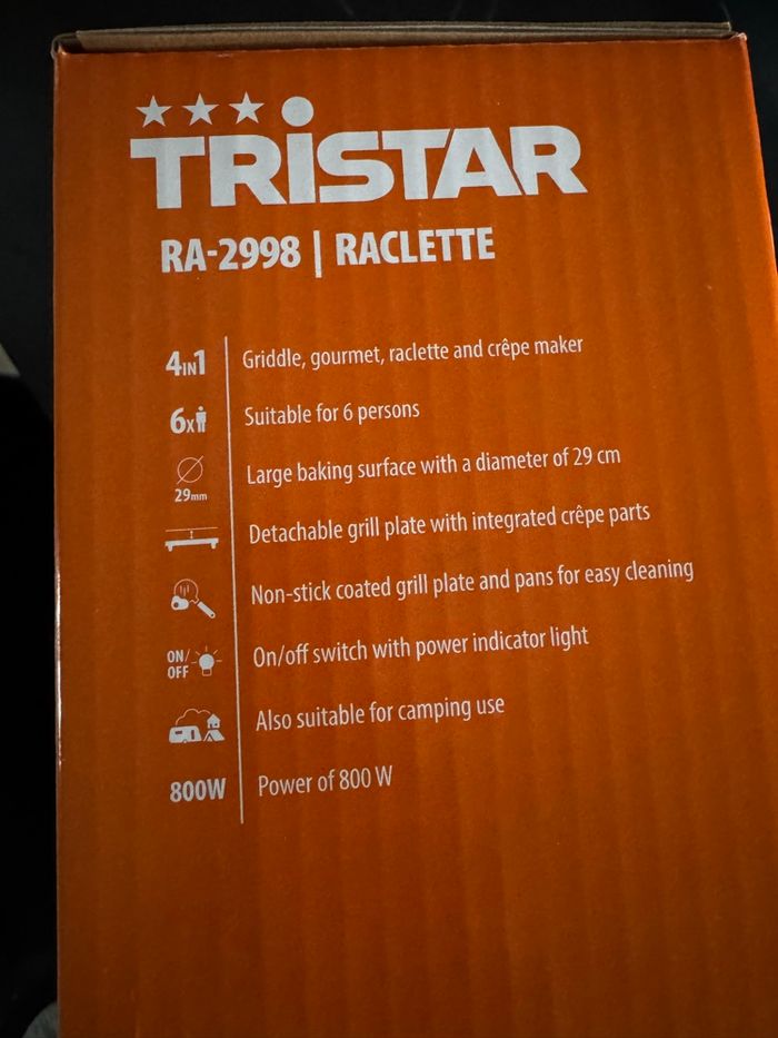 Appareil à raclette 4 en 1 tristar neuf jamais utilisé