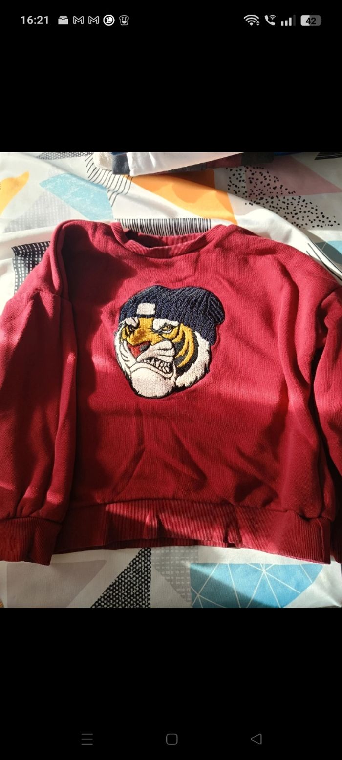 Pull 100% pur laine 4 ans . Tricoté a la main. Garçon / fille / mixte