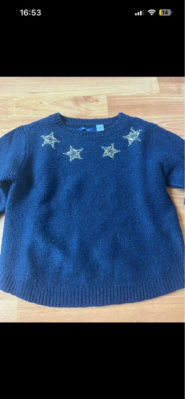 Pull laine ajouré, fille, 3 ans. Tricoté main.