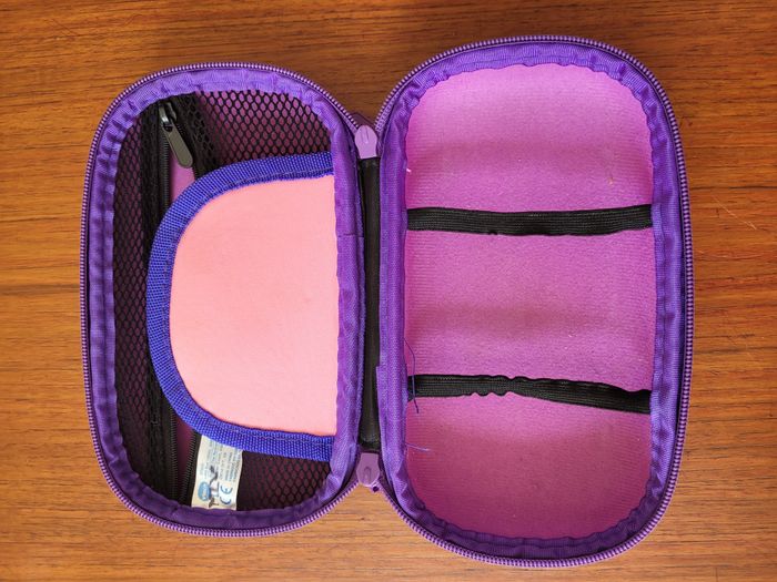 Sacoche de transport et de protection Mobi - Rose Pour transporter la console et éviter les chocs ! Mousqueton pour accrocher le sac à ta ceinture auréoles e traces d'usage sur le tissu extérieur
