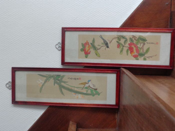 7/ Lot de 2 cadres "Fleurs et oiseaux" 14X40cm made in china - photo numéro 1
