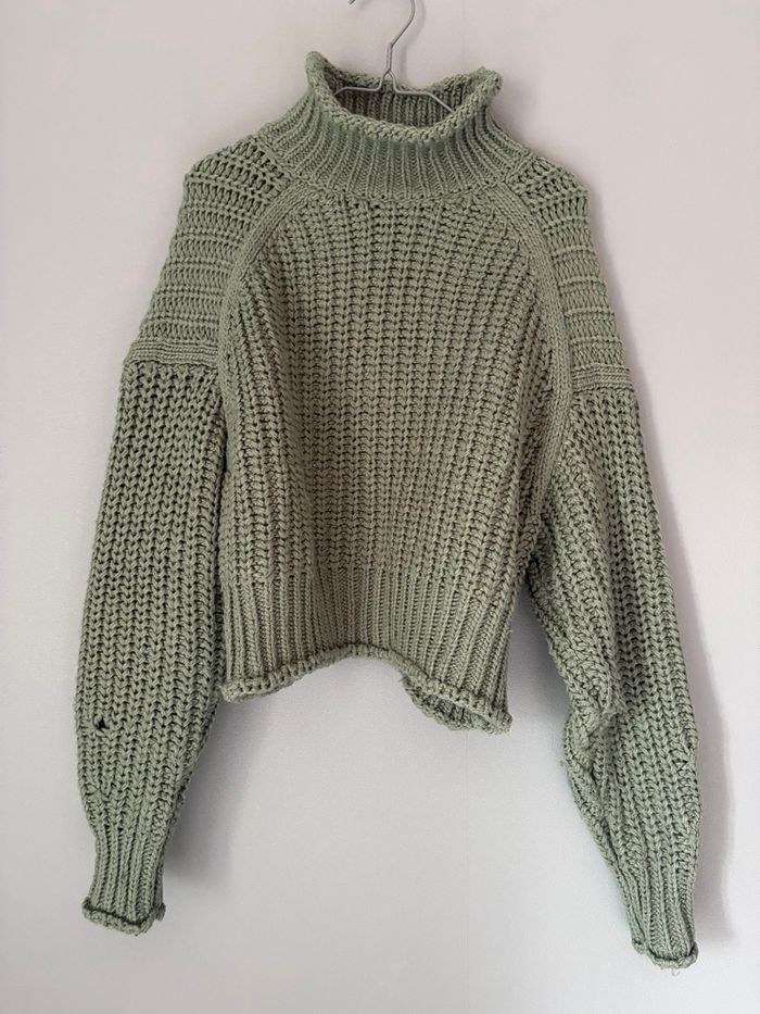 Pull grosse maille vert  - photo numéro 1