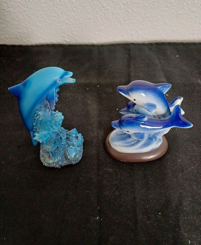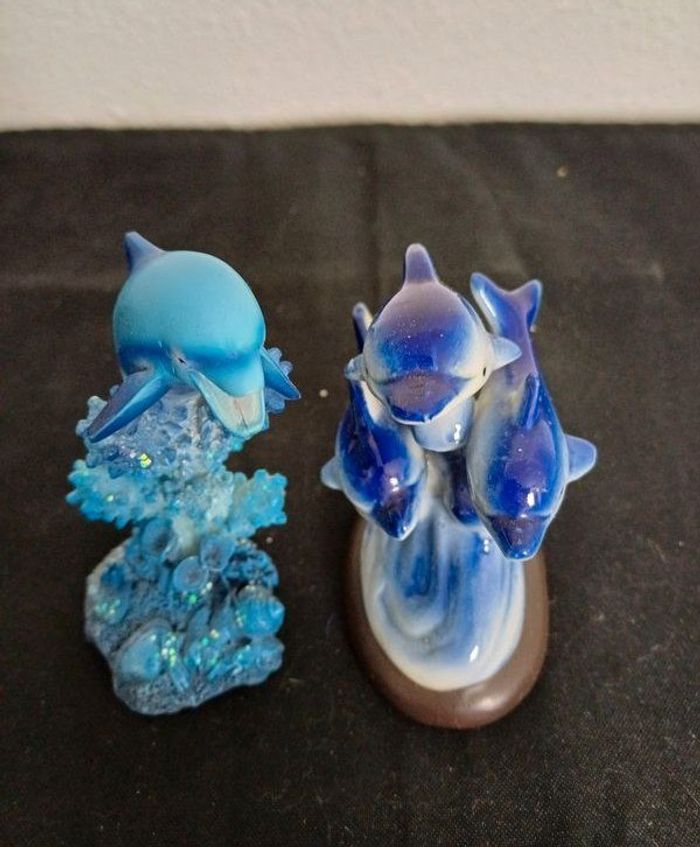 Figurine dauphin et petit tableaux dauphin !! L'une des figurines dauphin à l'aileron casser !! Voir photo