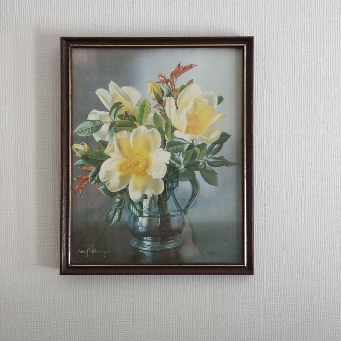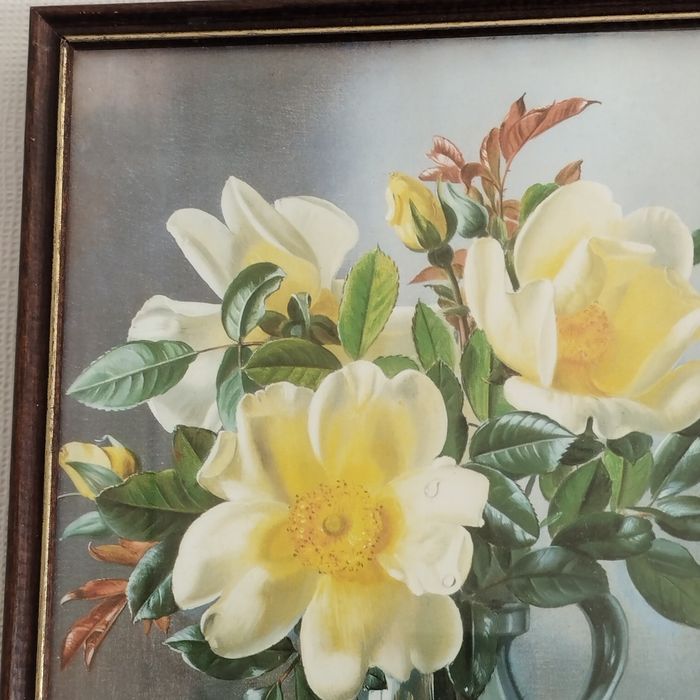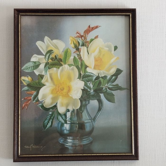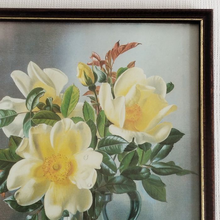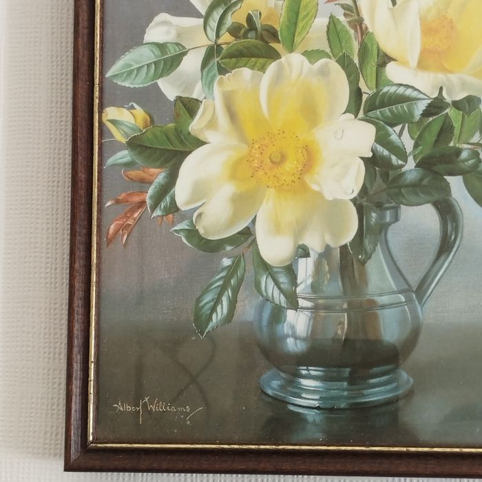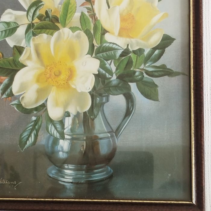 Cadre ancien d'Albert Williams bouquets de roses jaunes