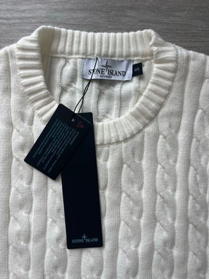 Pull Stone Island blanc – Badge logo – Très bon état