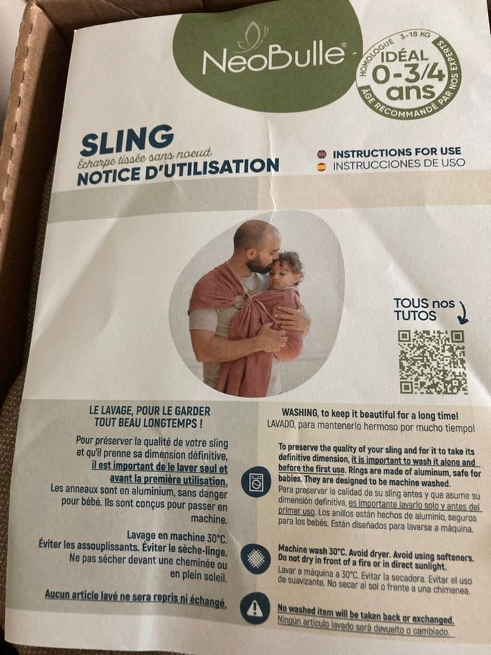 Vend écharpe neobulle jamais utiliser. Utilisable de la naissance à 3/4 ans