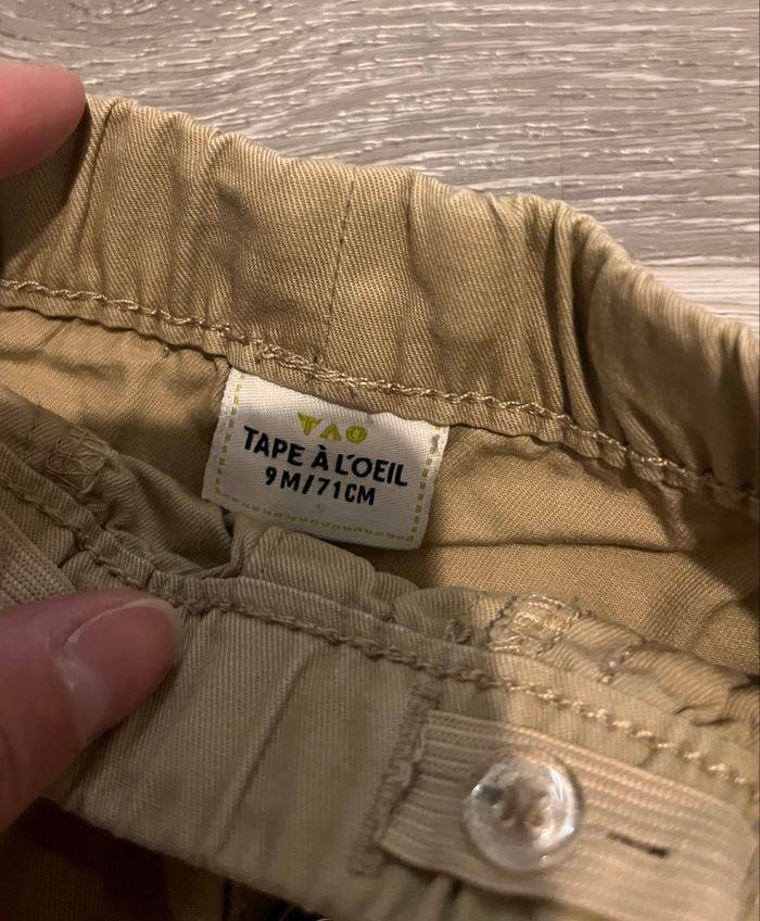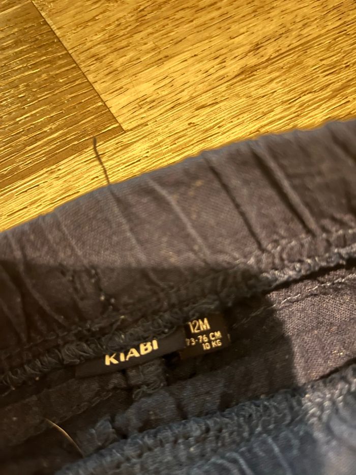 Lot de 2 pantalons Un chino beige —> 9 mois Un pantalon en lin bleu marine —> taille 12 mois mais correspond à du 9 mois