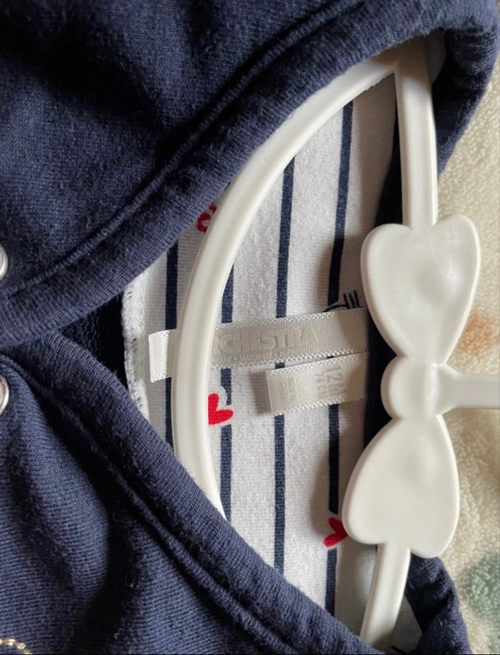 Ensemble peu mis comme neuf 1 bonnet 1 body 1 pantalon 1 veste Marque orchestra Taille 12 mois